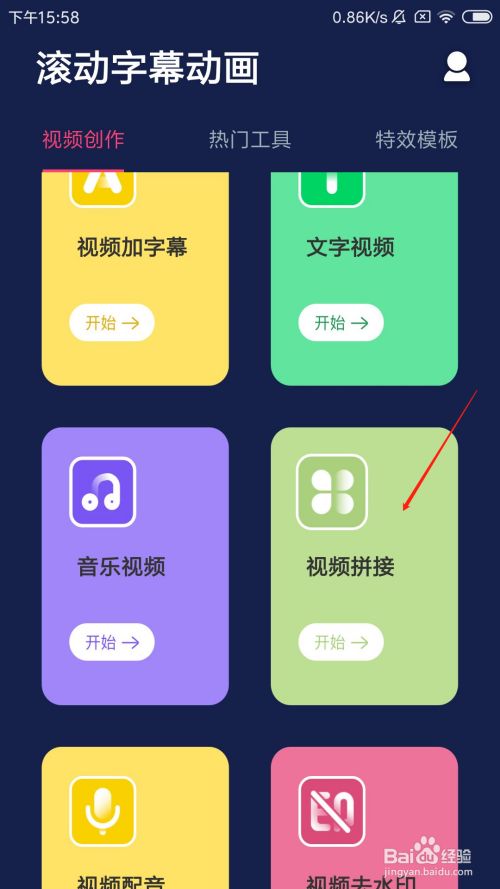 打开滚动字幕动画app之后,点击视频拼接选项。