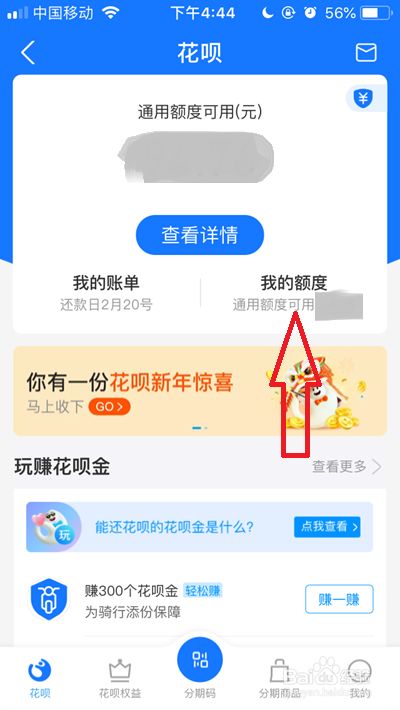 在花呗页面,我们点击【我的额度】