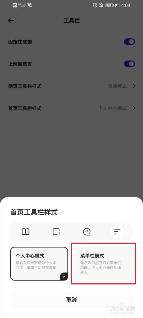 选择样式,例如点击【菜单栏模式】。