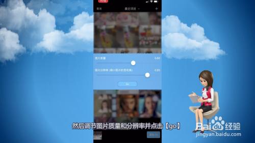 4、然后调节图片质量和分辩率并点击【go】。