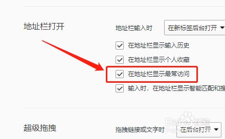 最后,在“地址栏打开”中,选择“在地址栏显示最常拜候”选项即可。如图: