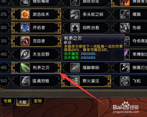 关头的倒数第二层选择利矛之刃。这样可以让我们的猛禽一击结果有显著的晋升。