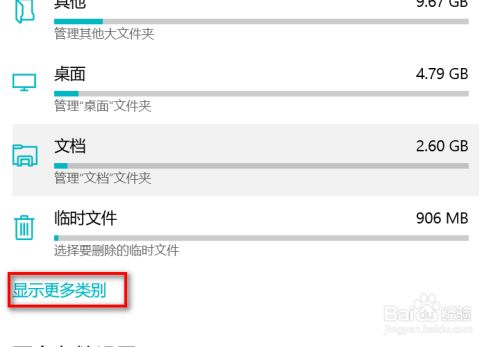 我们可以点击显示更多类别,就可以看到更详尽的存储空间占比环境。