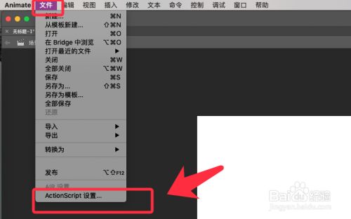 点击文件,选择actionscript设置。