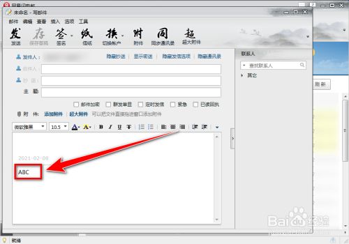 返回“写邮件”窗口,便可看见签名已改为我们设置的“发信人签名”。
