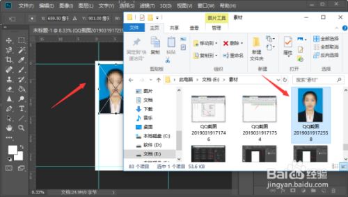 4、然后将所需要的图片拖入PS中,按快捷键“Ctrl+t”调整大小和位置,使图片沿着参考线放置。