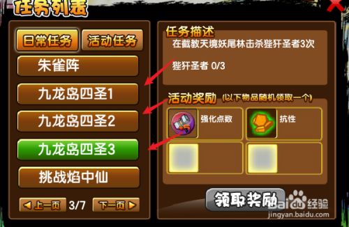 在日常使命的第三页,点击九龙岛四圣1,2,3使命完当作都可以获得强化点。