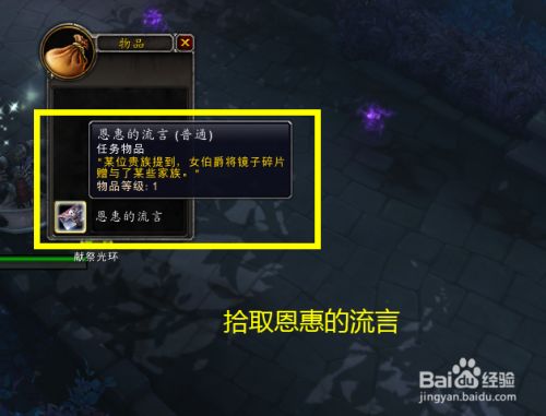 工具/原料电脑魔兽世界方式/步骤1第一步,移动到暗影界,雷文德斯地域(坐标60,61)接管使命。2第二步,打开地图,前去图示使命区域。3第三步,击败圣杯区信使,寻找谍报。4第四步,拾取浮泛句段。5第五步,拾取恩德的假话。6第六步,雷文德斯地域(坐标56,41)完当作使命“窃取谍报”。END