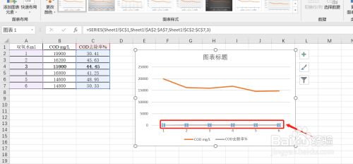 以双氧水这列数据作为横坐标轴数据,是以在 数据选择源 里把左边的双氧水打消;(左代表纵坐标轴,右代表横坐标轴)