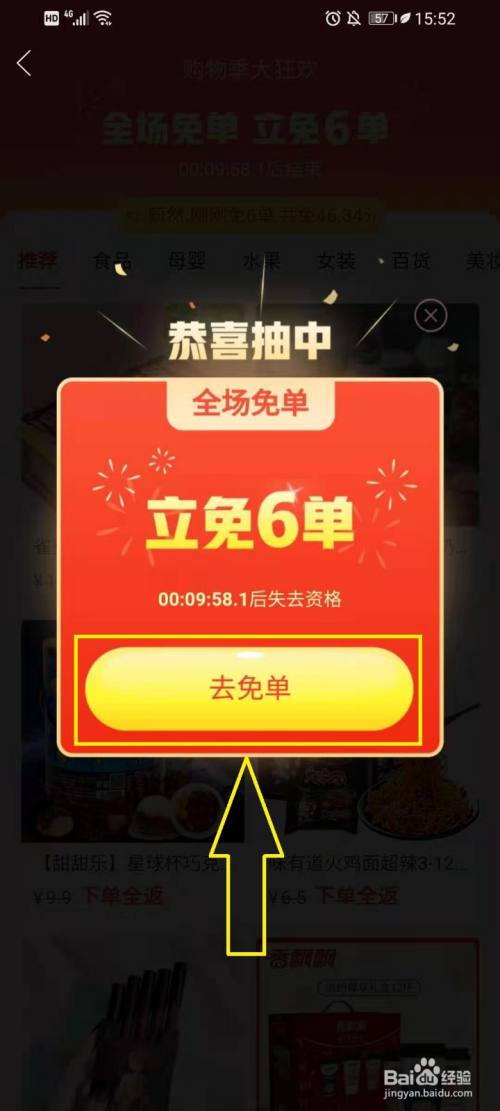 点击【当即抽取】,即可抽取免单机遇。