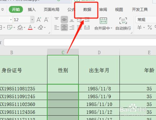 选中需要填充性此外列,点击上方的数据选项。