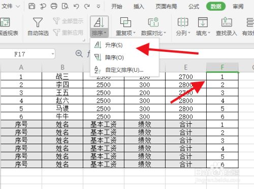 选择后面加的序号列,点击数据,选择排序里的升序摆列。