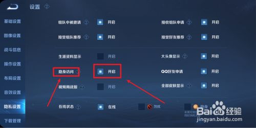 工具/原料华为荣耀v30安卓10王者荣耀3.1.16王者荣耀方式/步骤1进入王者荣耀2来到王者荣耀首页,点击右上角进入设置3进入设置点击隐私设置4然后在这里可以找到隐身拜候,点击开启,然后隐身拜候就打开了,这样去浏览别人本家儿页别人都是看不到的。END总结11、进入王者荣耀2、来到王者荣耀首页,点击右上角进入设置3、进入设置点击隐私设置4、然后在这里可以找到隐身拜候,点击开启,然后隐身拜候就打开了,这样去浏览别人本家儿页别人都是看不到的。END