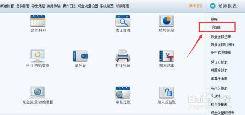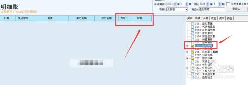 选择“明细账”,查看应付账条目的借方余额环境。
