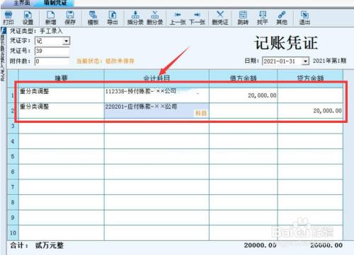 应付账条目的借方余额暗示金钱的现实性质已经变为“预付”的性质,必需进行重分类调整,调整后,应付账条目借方余额平账。账务处置是: