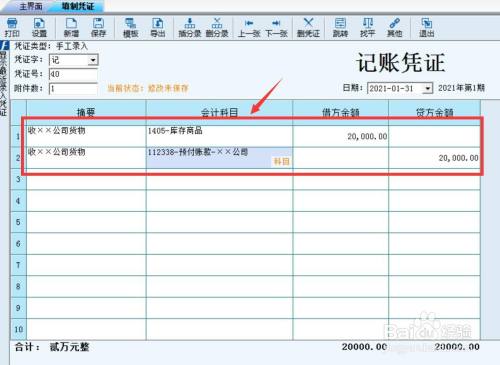 选择“录凭证”。
