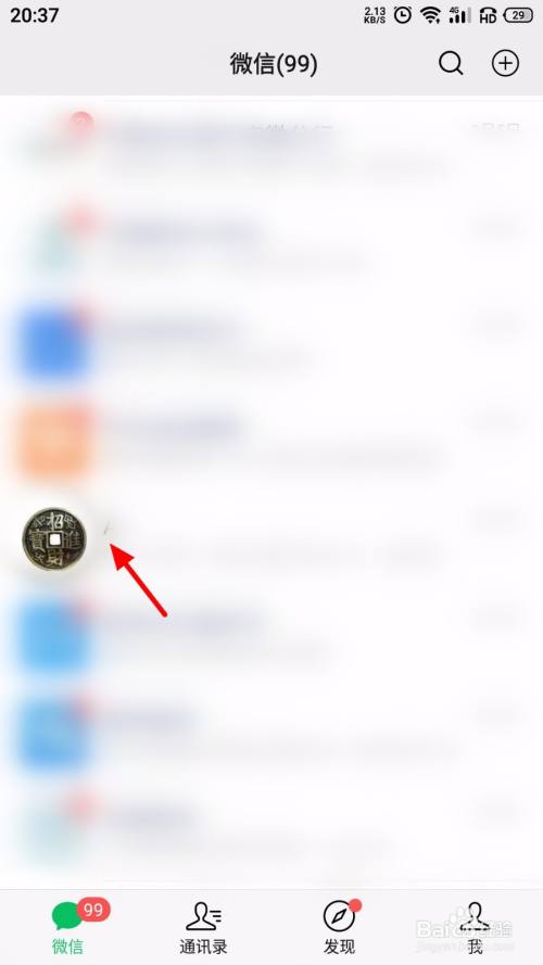 在微信首页页面,找到要发红包的老友,点击老友;