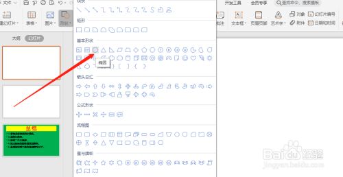 PPT幻灯片中绘制风帆图案,选择椭圆。