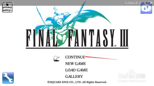 打开最终幻想3之后,点击CONTINUE选项。