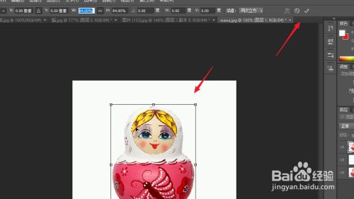 娃娃缩小必然比例之后,我们点击属性栏最后面的一个选项,保留更改。