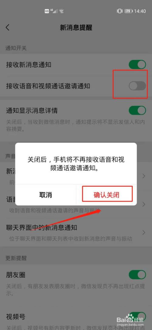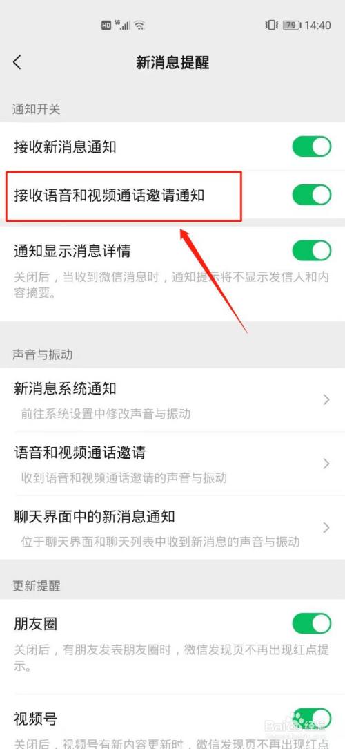 然后找到“接收语音和视频通话邀请通知”通知开关。