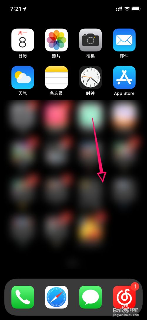 在苹果手机桌面上,点击右上角屏幕标的目的下滑动。