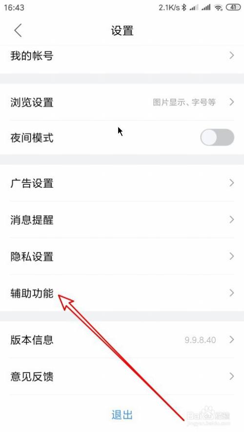 这时会打开百度贴吧设置页面,点击辅助功能菜单项。