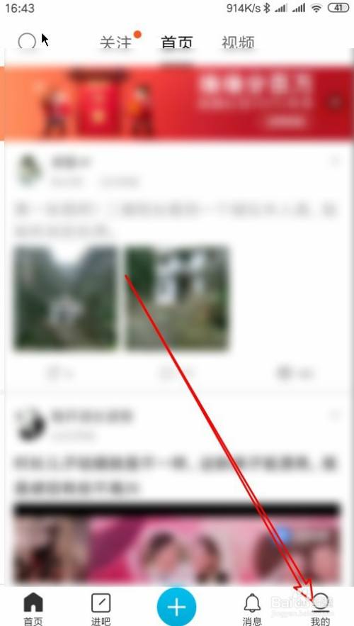 然后在打开的百度贴吧页面,点击右下角我的选项卡。