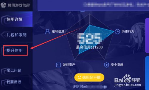 打开晋升信用面板后,即可获得晋升腾讯信用的具体使命介绍