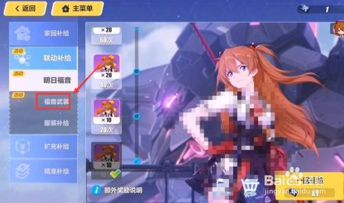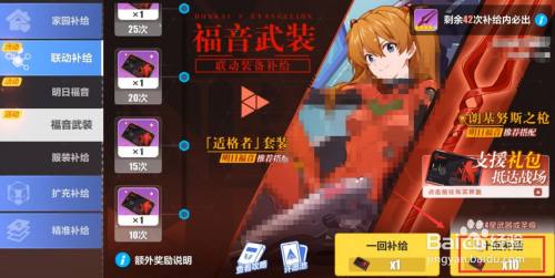 工具/原料iPhone 11iOS 14.5崩坏 3方式/步骤1崩坏3游戏本家儿页面中,我们点击打开补给页面2打开补给页面后,我们点击前去补给3在补给中,我们点击进入福音武装4进入福音武装补给后,点击十回补给,我们要点击4次十回补给5点击4次十回补给后,我们点击左侧抽取次数奖励中的40次奖励6然后我们就获得了光鲜的同步率衣服END
