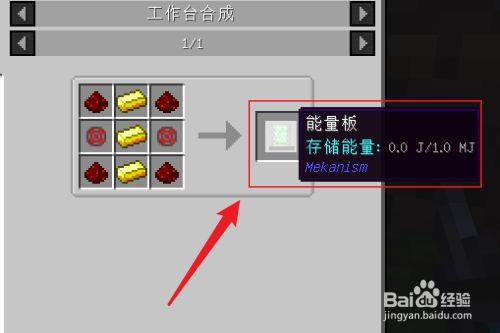 用四个红石,三个金锭,两个富调集金建造出能量板。