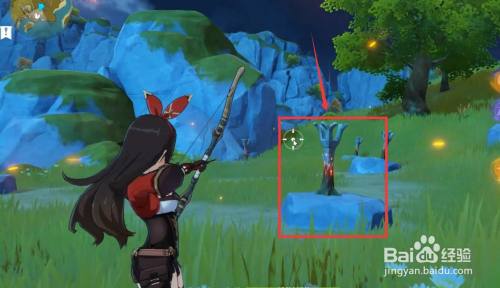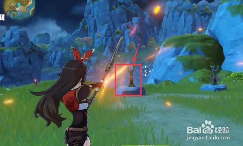 接着我们拿出火弓箭,射标的目的我们面前的火炬柱,将其点燃