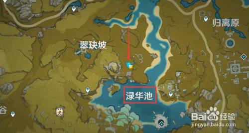原神游戏中,我们打开地图,前去绿华池上方的标识表记标帜地址处