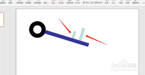 WPS演示中绘制钥匙图标,最后绘制两个矩形就可以了,如图所示。