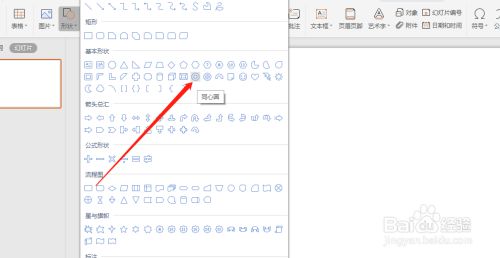 WPS演示中绘制钥匙图标,选择齐心圆,如图所示。