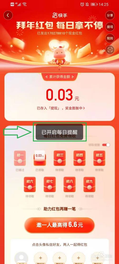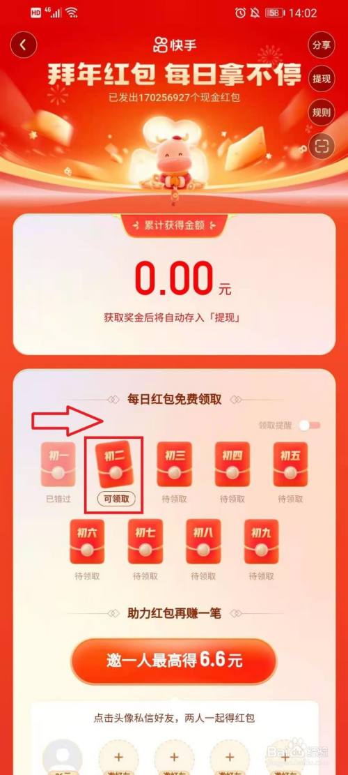 点击【每日红包】,进入贺年红包领取页面。