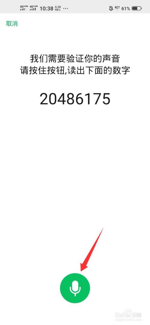 之后屏幕上面会呈现一组随机数字,按住下面的灌音键,以泛泛的声音读出上面那段数字,这样反复操作两次系统记实下声纹。