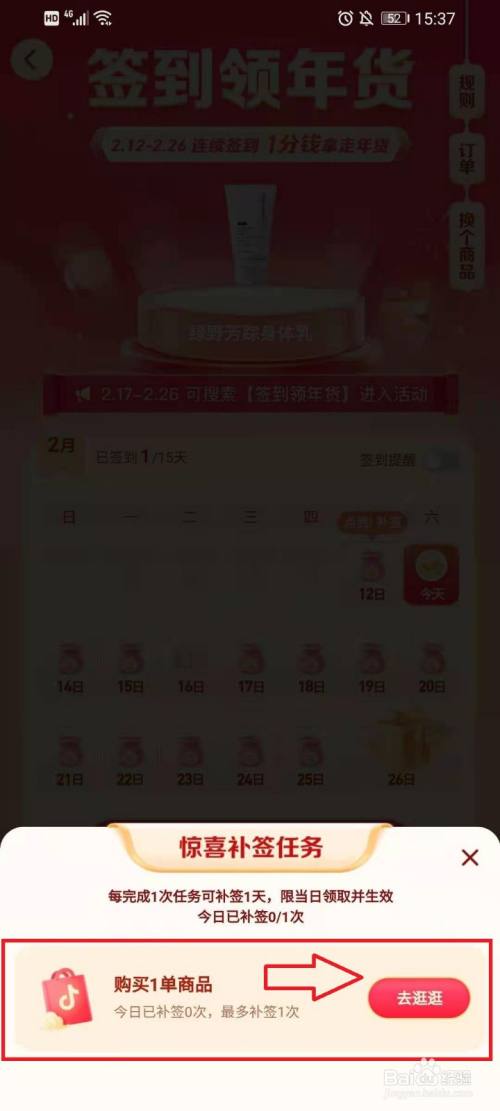 按照提醒完当作1次使命即可补签一天。