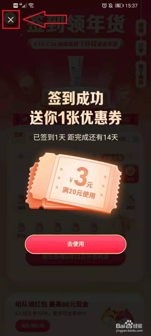 第一次进入页面时,随便点击一个【1分钱拿走】,即可签到。