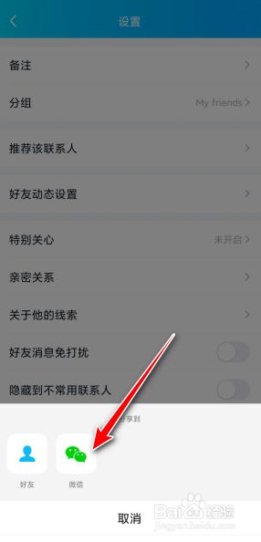 点击保举该联系人,然后选择微信。