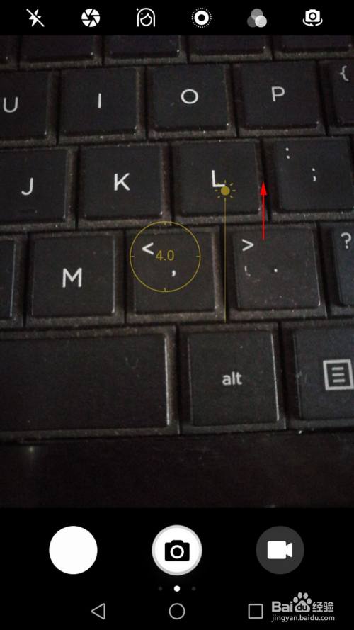将曝光图标标的目的上滑,增大曝光度;将曝光图标标的目的下滑,降低曝光度。(如图)调节好后,点摄影按钮摄影