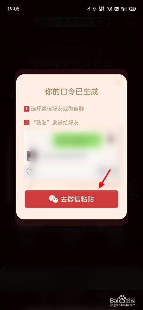 生当作口令后,点击去微信粘贴,这样到微信发个给老友就可以了。