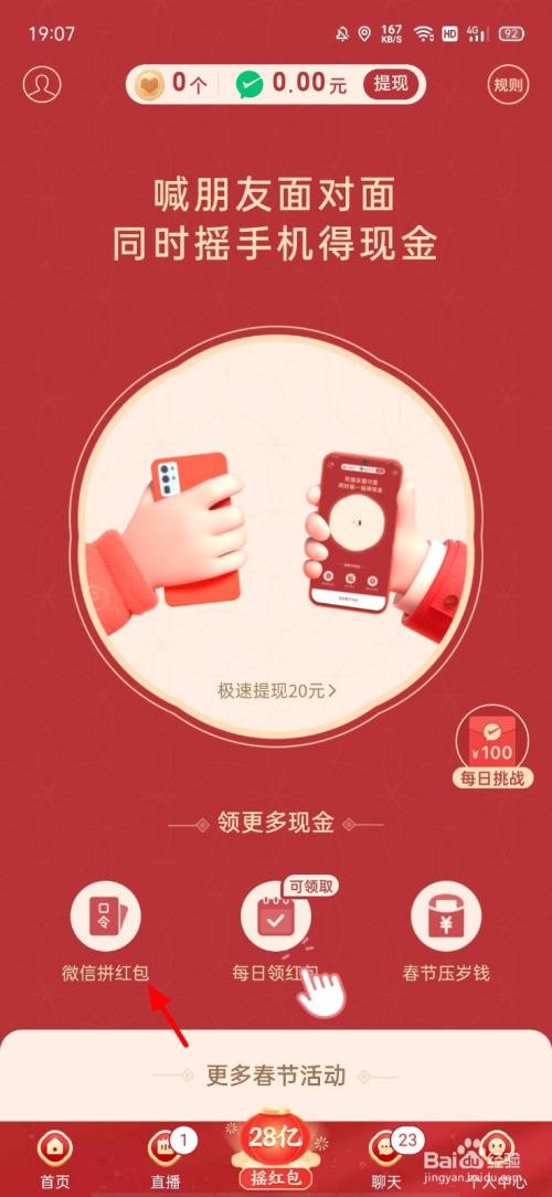 【1】打开 拼多多,点击 28亿>微信拼红包;
