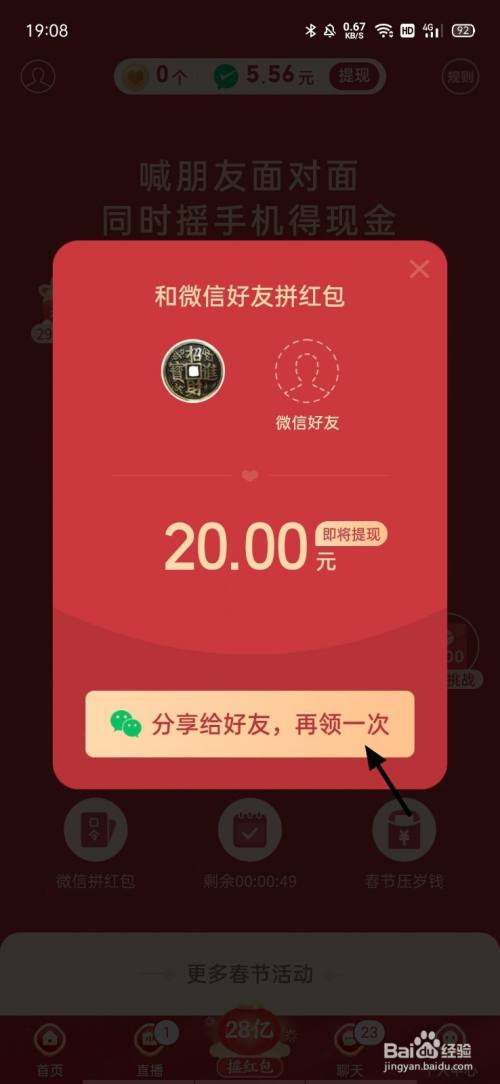 在和您的微信老友页面,点击分享给老友,再领一次;