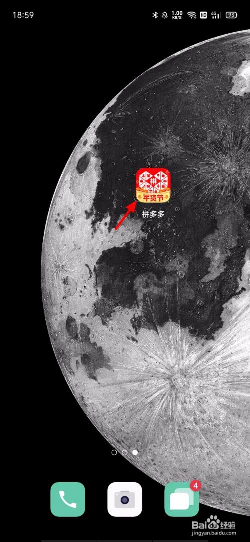 手机开机,在手机桌面打开 拼多多;