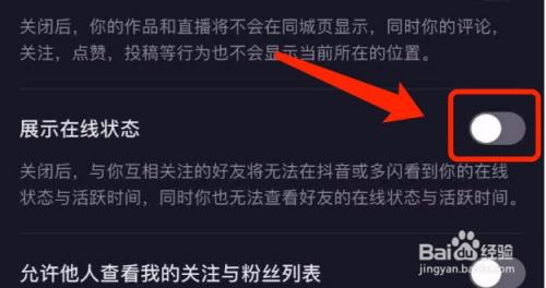 点击展示在线状况的开关。
