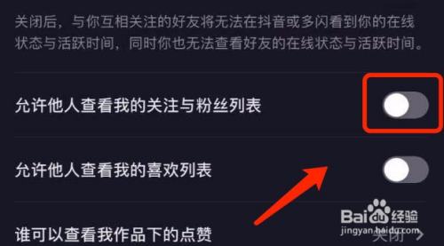 点击许可他人查看我的存眷与粉丝列表的开关。