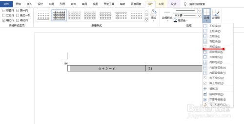 接着,选中整个表格,并在设计选项卡下点击无边框,具体如图所示: