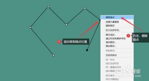 将鼠标放在锚点上,右击—>在弹出的选项卡中选择删除锚点