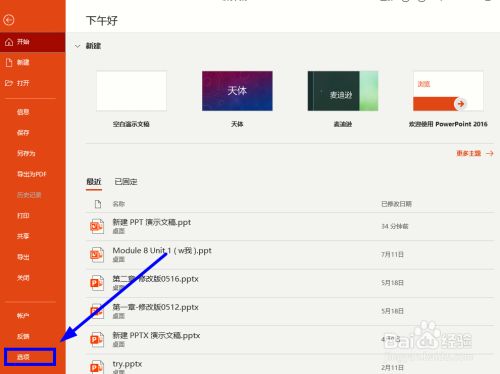 鄙人一级菜单左侧列中选择【选项】单击